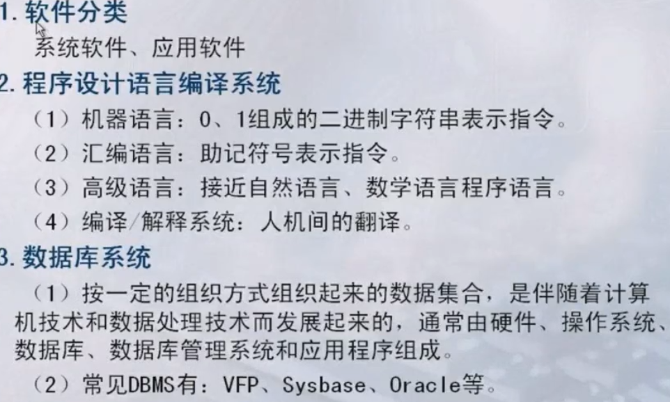 (3)高级语言:接近自然语言、数学语言程序语言。